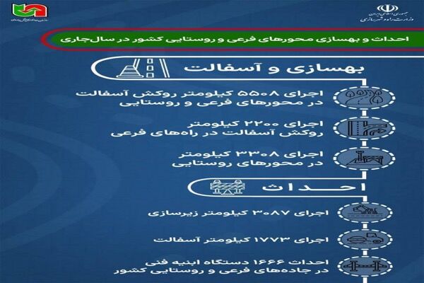 اطلاعنگاشت| احداث و بهسازی محورهای فرعی و روستایی کشور در هفت ماهه سال ۱۴۰۴ جاده ای 1404/08/10 اطلاعنگاشت| احداث و بهسازی محورهای فرعی و روستایی کشور در هفت ماهه سال ۱۴۰۴