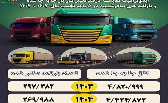 اطلاع نگاشت| میزان جابه جایی بار و بارنامههای صادره شده استان همدان در پنج ماهه نخست سالهای ۱۴۰۳ و ۱۴۰۴ – راهساز و به نقل از – وزارت راه و...